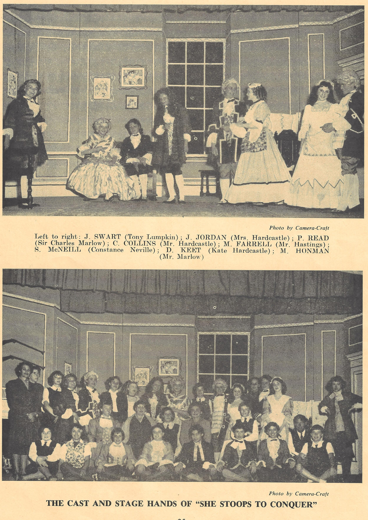 READ (Sir Charles Marlow); C. COLLINS (Mr. Hardcastle); M. FARRELL (Mr.