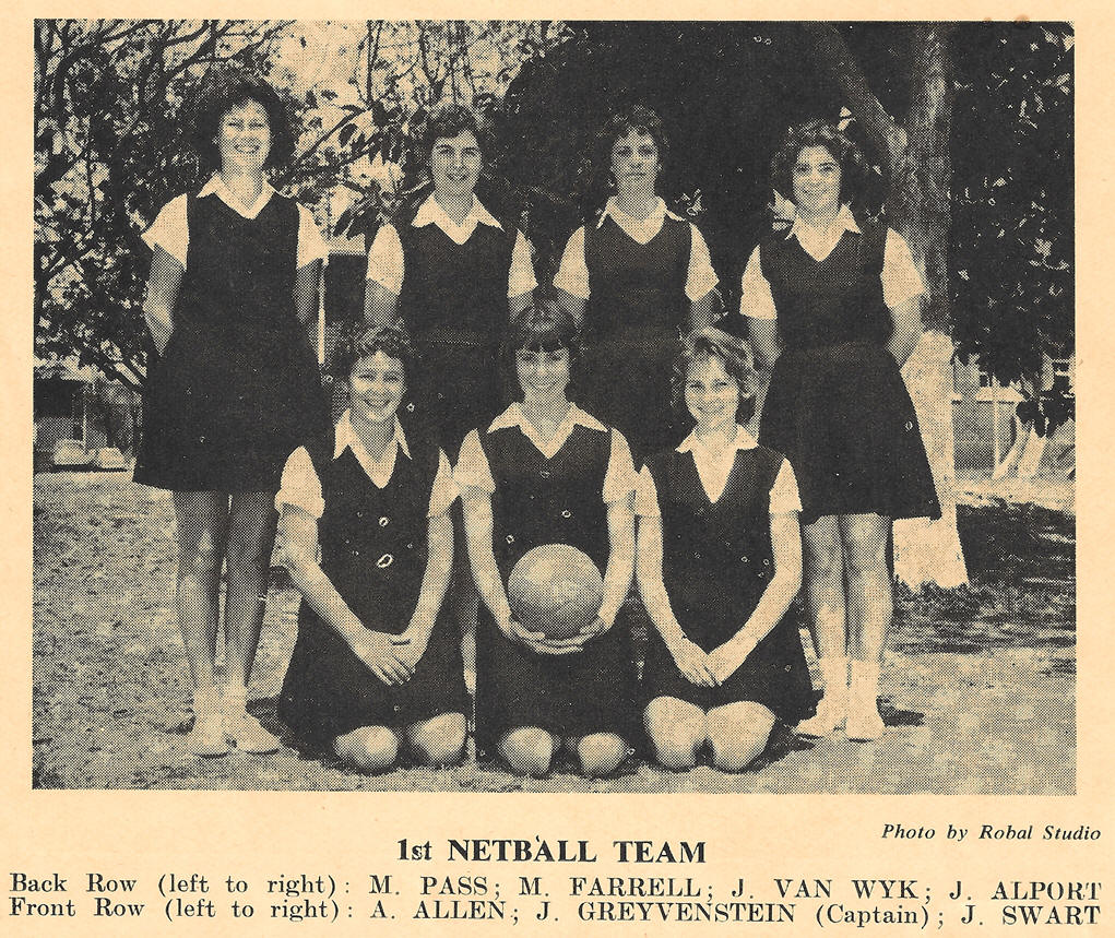 Back Row (left to right): M. PASS; M. FARRELL; J. VAN WYK; J. ALPORT