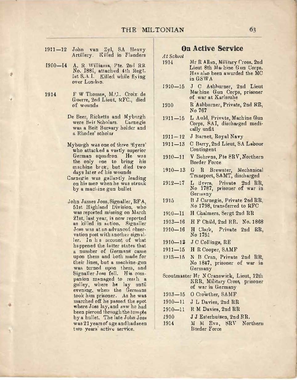 1911-12 John van Zyl, SA Heavy Artillery. Killed in Flanders
