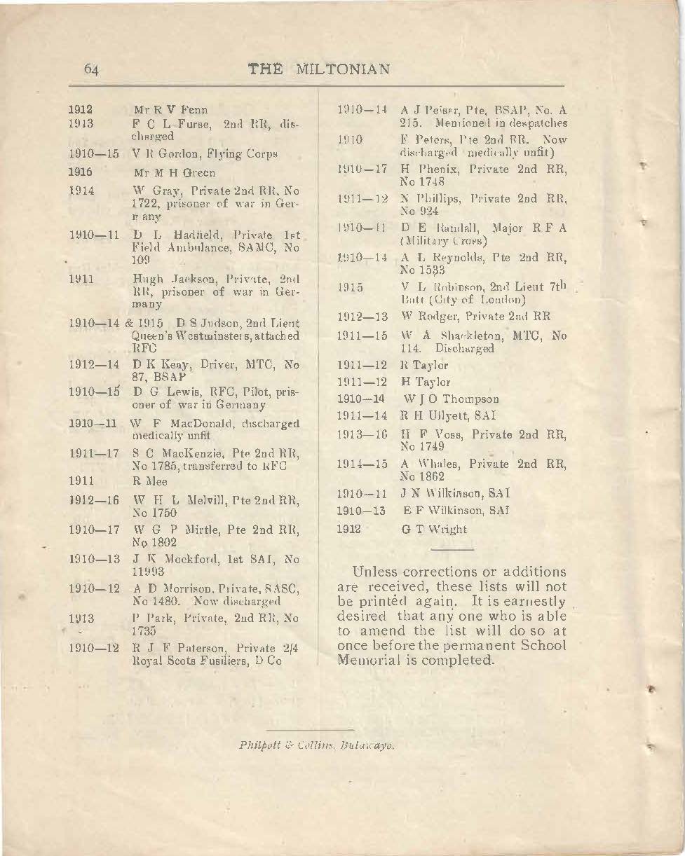 1911-12 N. Phillips, Private 2nd RR, No 924